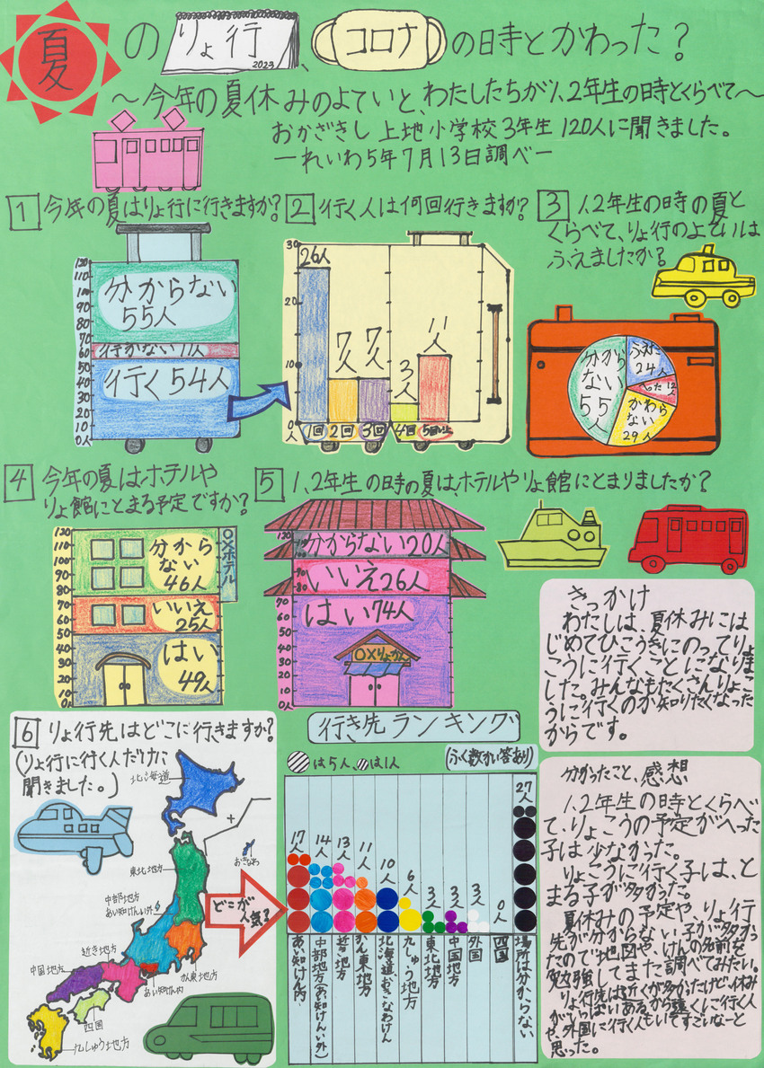 テーマ | 夏のりょ行、コロナの時とかわった? ~今年の夏休みのよていと、わたしたちが1、2年生 の時とくらべて~ |