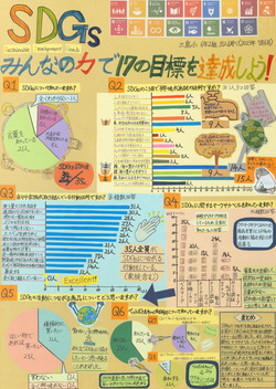 質問の内容がよく考えられており、夏を乗り越えるための工夫を皆で共有しようという作者のねらいが非常に伝わってくる作品です。一つ一つのグラフが興味を引くような形で描かれていて、力強さを感じます。 |