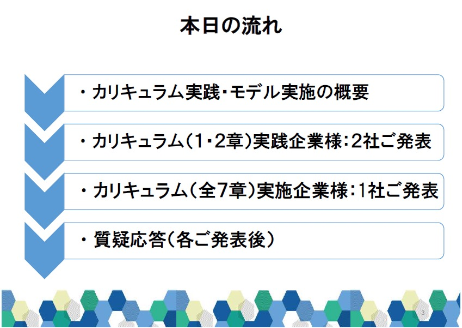 まず、モデル・カリキュラムを実践する企業や団体は、研修案の作成から研修実施方法の検討を行いました。