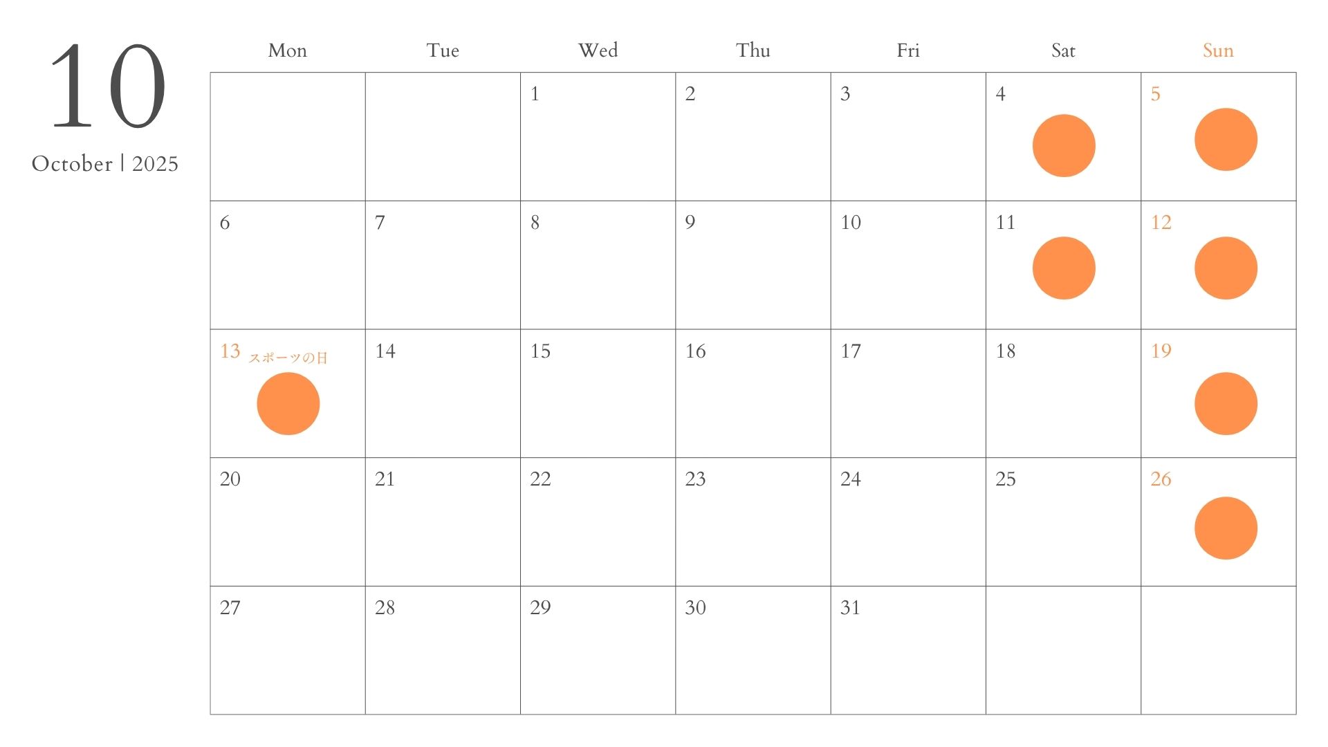 4日(土)、5日(日)、11日(土)、12日(日)、13日(月・祝)、19日(日)、26日(日)